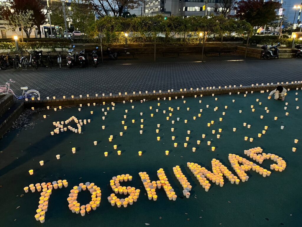 子どもたちは、プラスチックや紙コップに好きな絵を描き、キャンドルにしたり、ツリーに飾ったりいたしました。