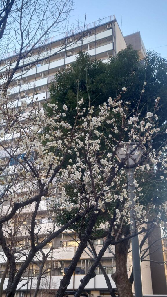 団地の敷地内のあちらこちらで、梅が咲き始めました。寒い日が続きますが、少しだけ春の兆しが確認できました。