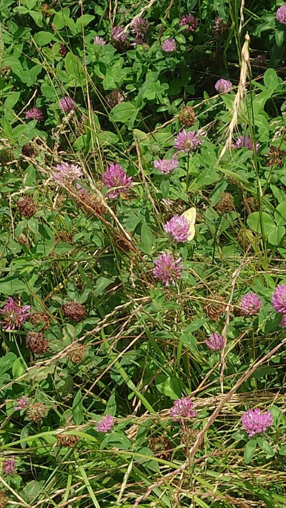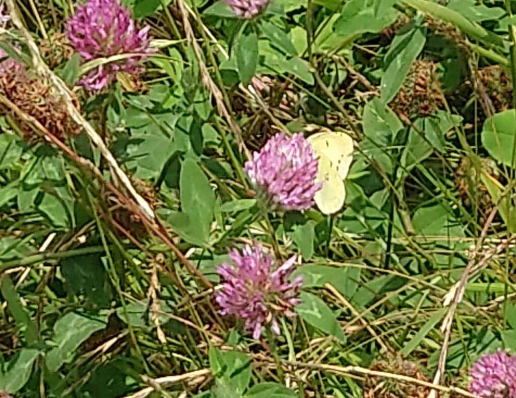 土手沿いのクローバーには、良くモンキチョウが飛んでいます。
