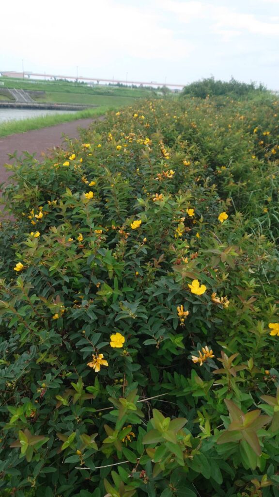 団地の横の隅田川の土手は、黄色い花でいっぱいでした。