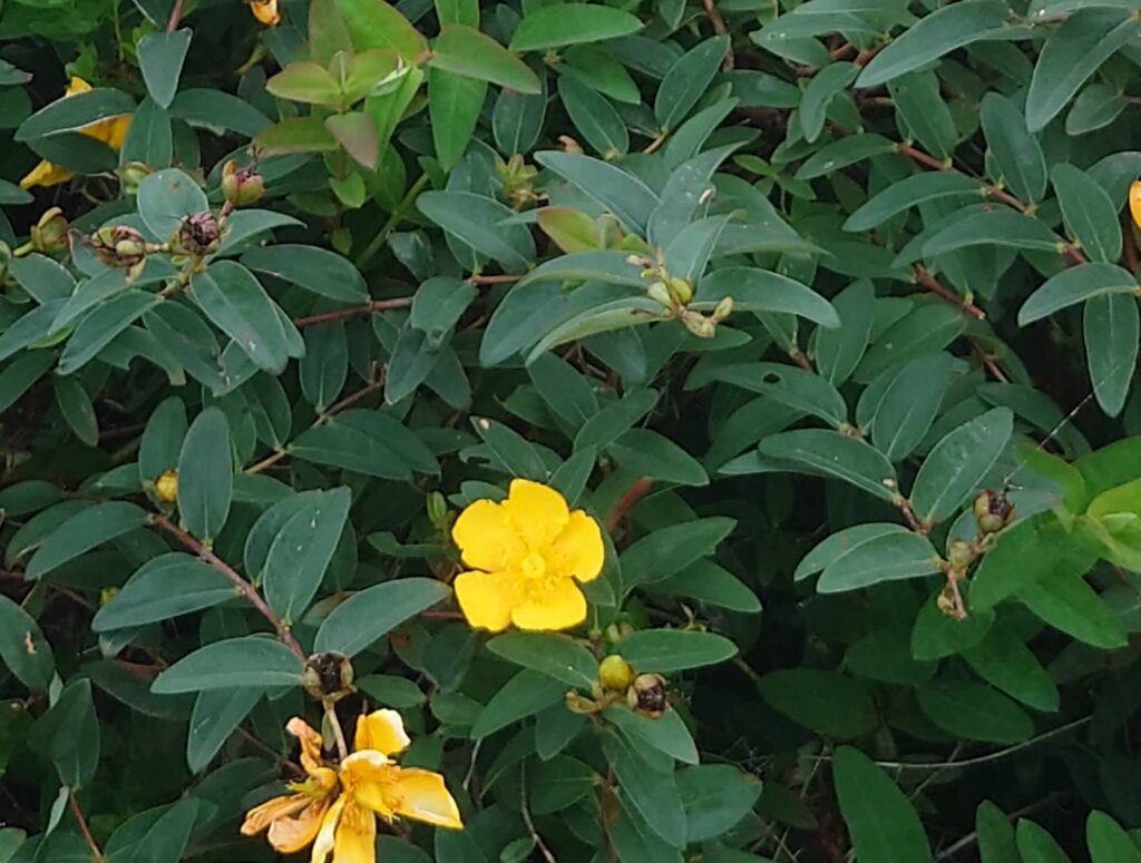 これは、金糸梅(キンシバイ)という、中国原産の花だそうです。鮮やかな黄色ですね。