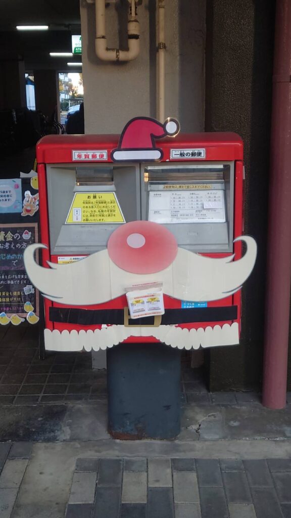 団地内の郵便局のポストがサンタクロースに仮装しています🎅クリスマスムードたっぷりですね。