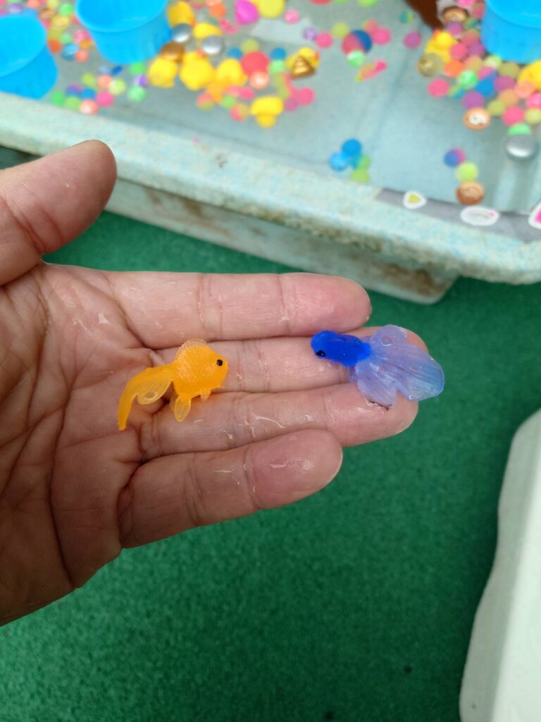 金魚すくいではないのかな?と、覗いてみたら、かわいいゴム製の金魚が泳いでいました。