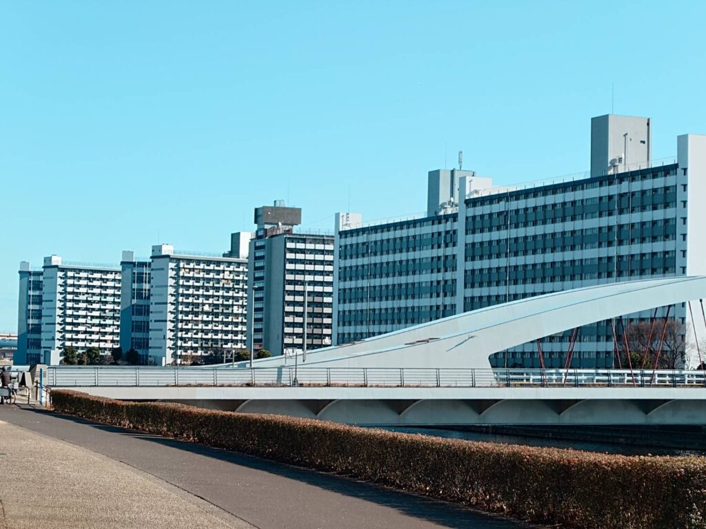 元旦の良い天気に、団地の荘厳さが映えていました。皆さんが、健康で幸せな一年になりますように。
