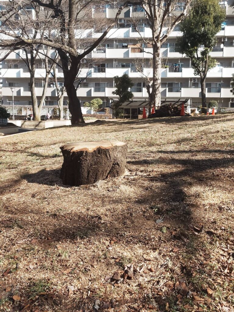 何か理由があってのことだと思うのですが、団地内の大きな桜の木が伐採されていました。