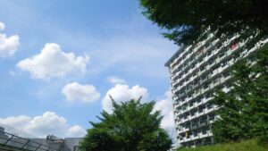 2022年7月22日 日差しが照りつける33℃の団地。日陰を・・・
