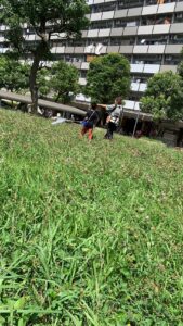 2022年7月22日 緑はえる団地の真ん中。虫網持った親子・・・