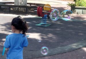 2023年7月19日 親子三代でのシャボン玉遊び。強い陽射・・・