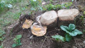 2023年10月15日 団地の植え込みの切り株に、キノ・・・