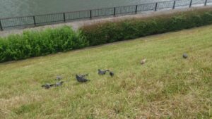 団地の中にいる鳩の・・・