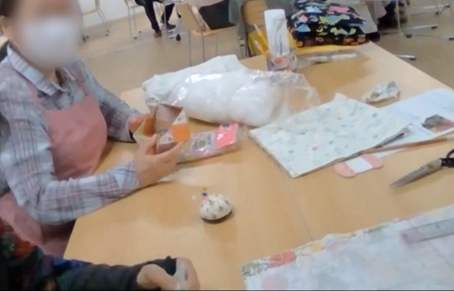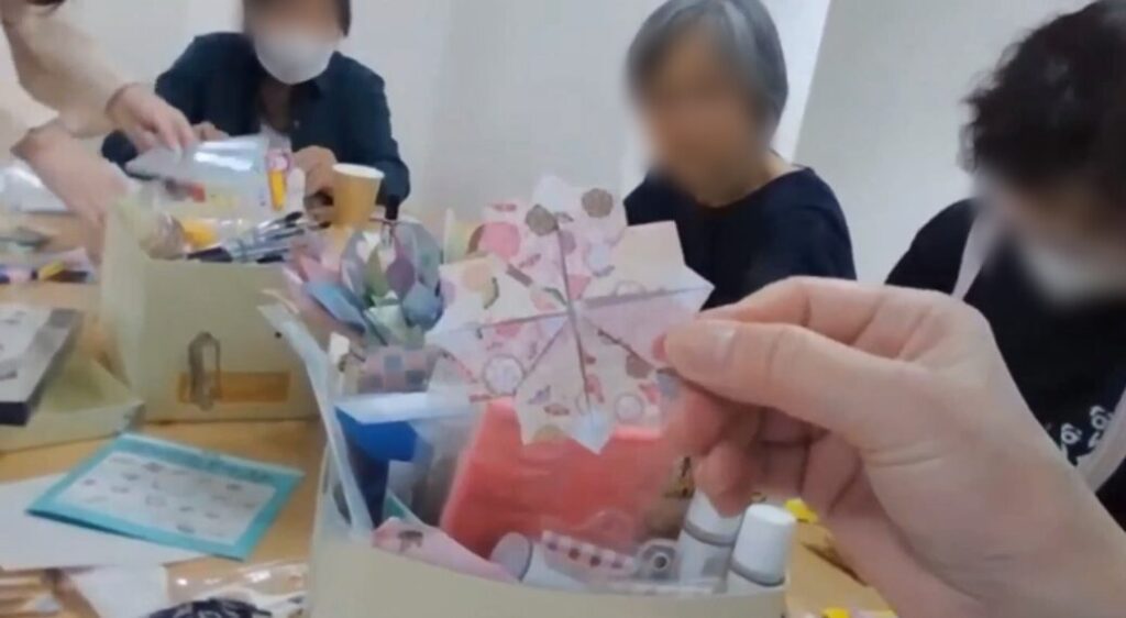 こちらのデーブルでは、折り紙を用いて、色鮮やかで素敵な作品を数多く作られていました。