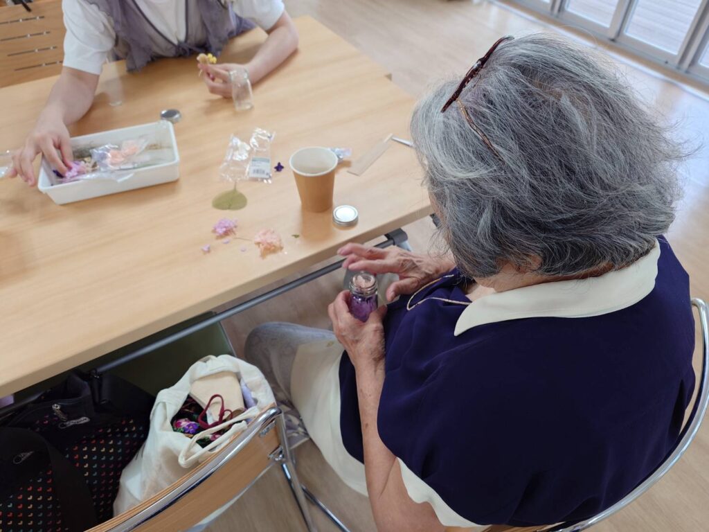 ハーバリウムの作成は、少しドキドキしながら行いましたが、完成はキレイさ作品になりました。