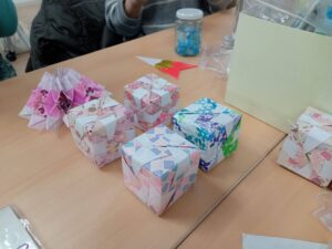 本日は新しく来られた3名の方と一緒に、折り紙のキューブを作成しました。 組み立てがパズルみたいで難しかったのですが、協力しながら綺麗なキューブが完成しました🧩🔷 一方、こちらは編み物に挑戦する男子高校生です。「肩の力を抜 […]