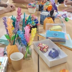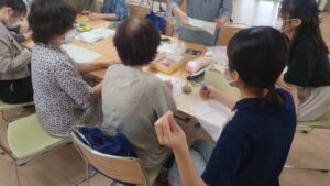 7月のフラット5は、皆さん、細かい作業に取り組まれました。うちわ作りの際には、一つのテーブルに同じお名前の方が三人おられることが分かってびっくり!こんな偶然もあるのですね。 この他、自治会のお祭りで飾るアートフラワーにも […]